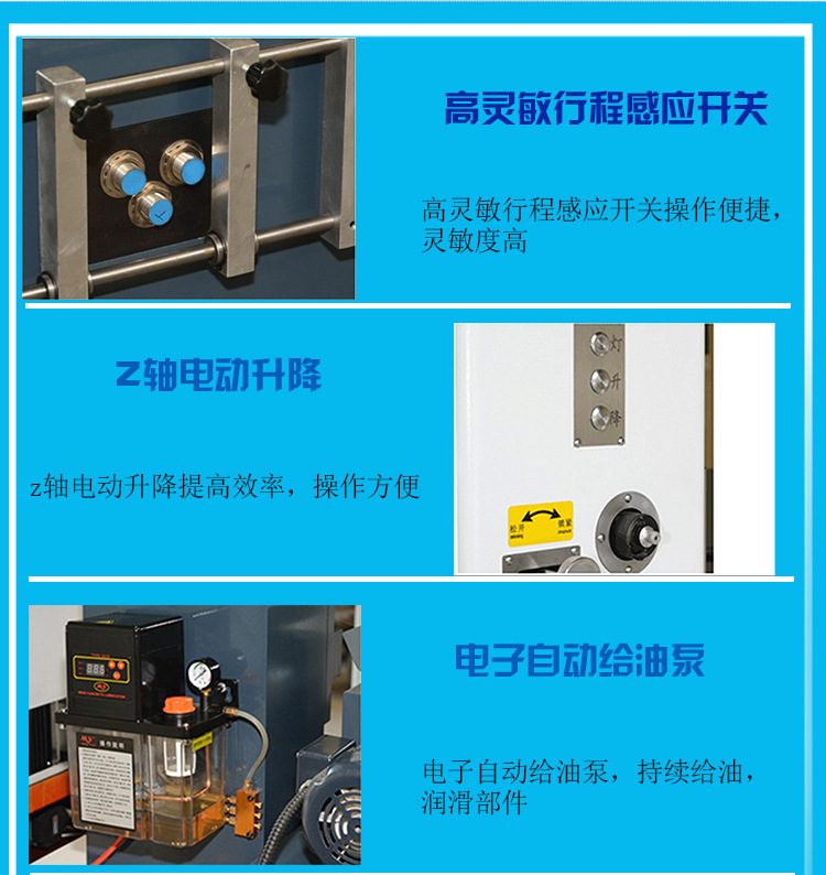 采用变频器控制,丝速无级可调,并可自动诊断运丝系统故障。运丝换向采用接近开关无接触换向,换向平稳。