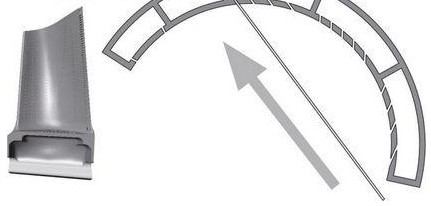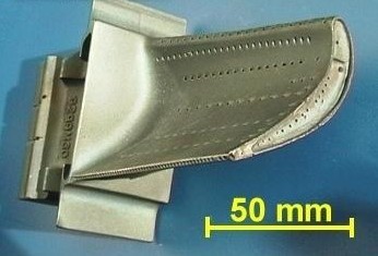 图2 在涡轮叶片上以极大的倾角对冷却通风出入口进行小孔加工