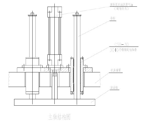主轴结构如下图所示,采用了全防腐结构,用气控驱动,上下滑