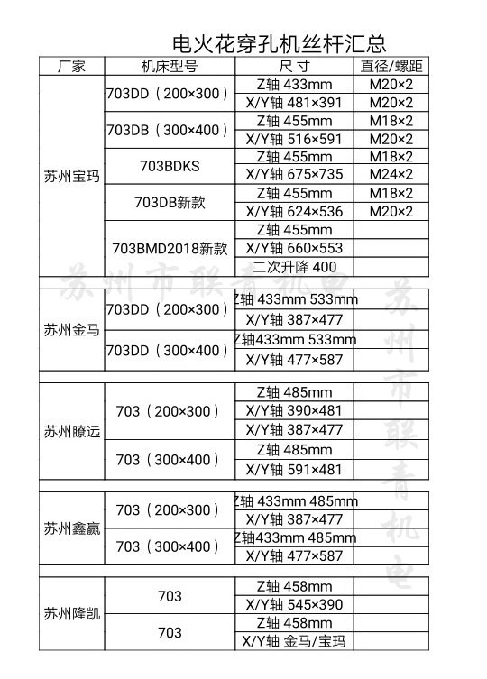 以下为苏州各大电火花穿孔机厂家的丝杠规格尺寸明细